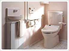 患者(入所者)様、そのご家族、施設で働く方々といった施設内にいる方々のニオイによるストレスを取り除くこと、「病院に行くと病気になる(病気をうつされる)」といったマイナスイメージを取り除くことが求められる施設が多くなっています。トイレ、汚物処理室、浴室、個室での施工が主になります。